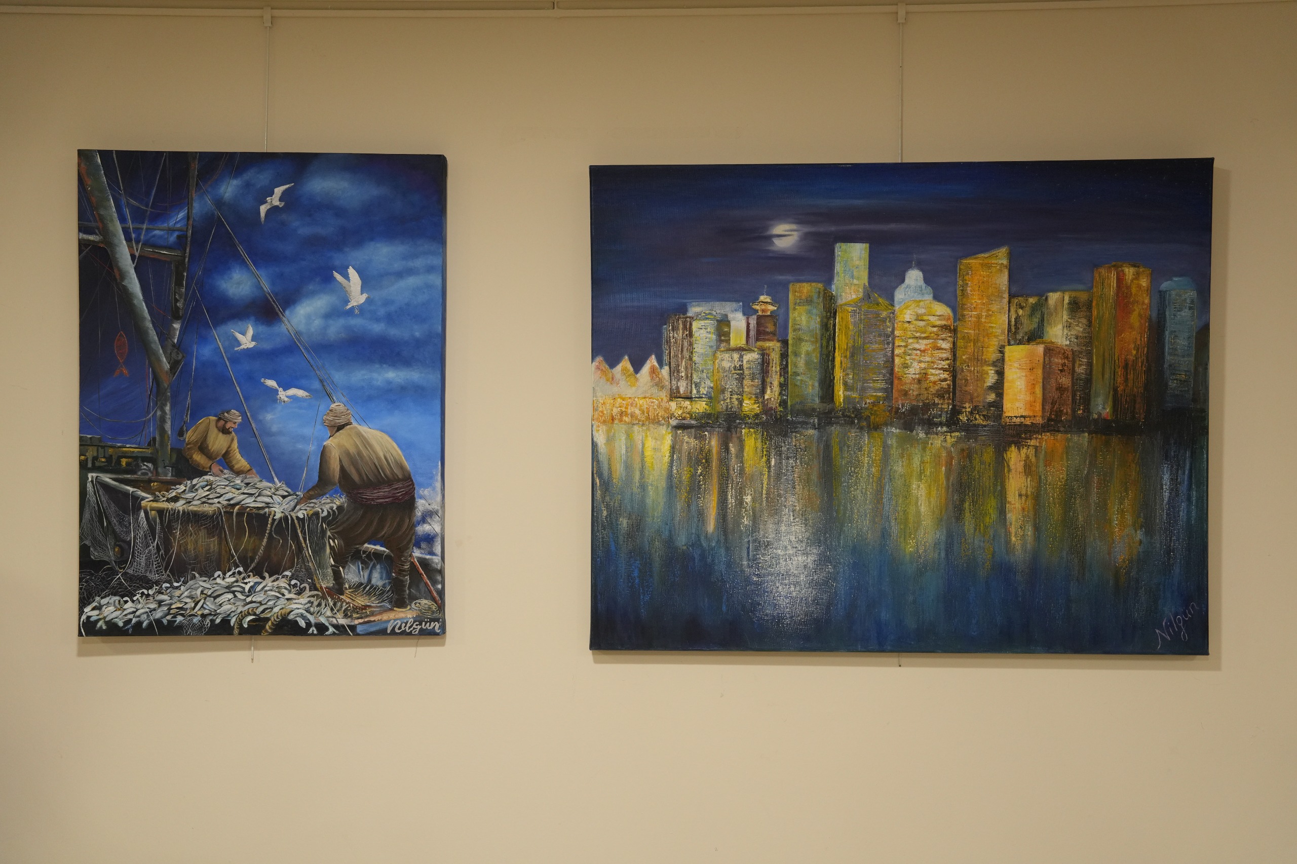 Sergi alanı, üç değerli sanatçının fırçasından çıkan eserlerin buluşma noktası oldu. Selvin Mutlu, Nilgün Çamlı ve Mehmet Kartal’ın ortak imzasını taşıyan sergi, konu çeşitliliği ve teknik zenginliğiyle dikkat çekiyor.