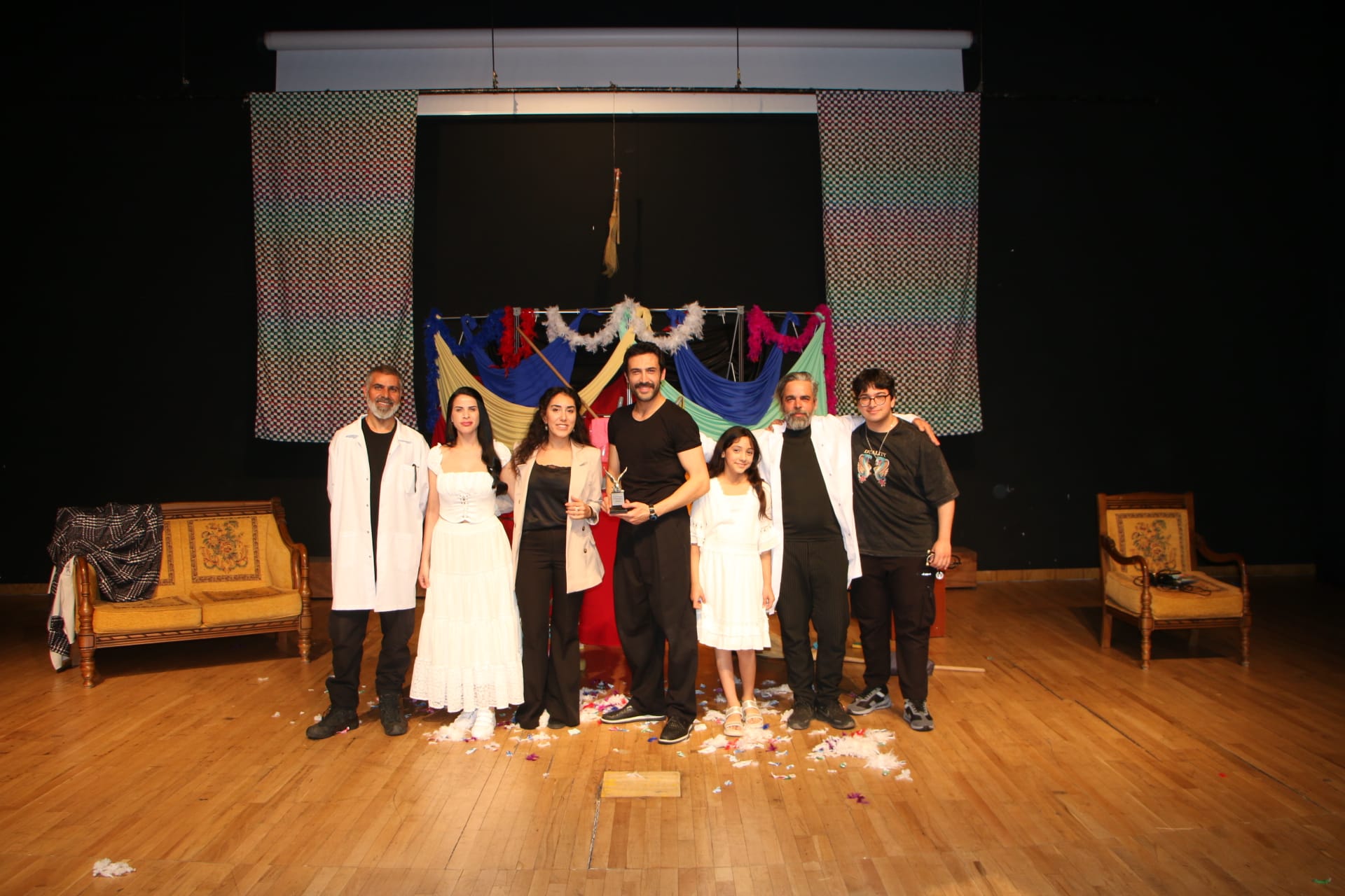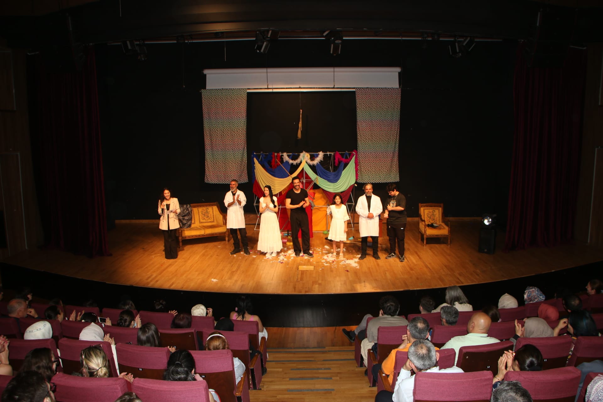 Gösterim sonunda sahneye çıkan Kartal Belediyesi Kültür ve Sosyal İşler Koordinatörü Gizem Atmaca, başarılı performansları dolayısıyla tüm oyuncuları ve yönetmeni kutlayarak Kartal Belediye Başkanı Gökhan Yüksel’in selamlarını iletti ve Başkan adına oyunculara Kartal heykelciği takdim etti.